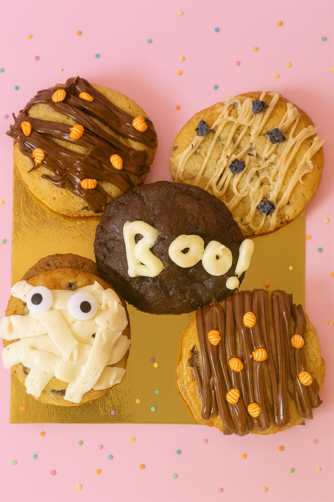 מארז המכיל 5 יח׳ עוגיות אמריקאיות מעוצבות באווירת האלווין