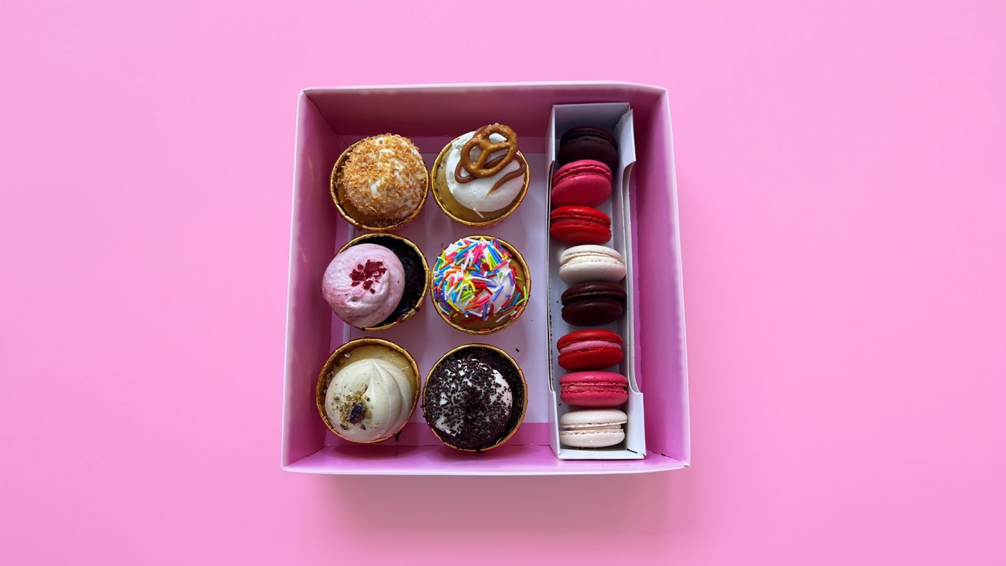 מארז המכיל 6 קאפקייקס ו8 מיקס מקרונים.